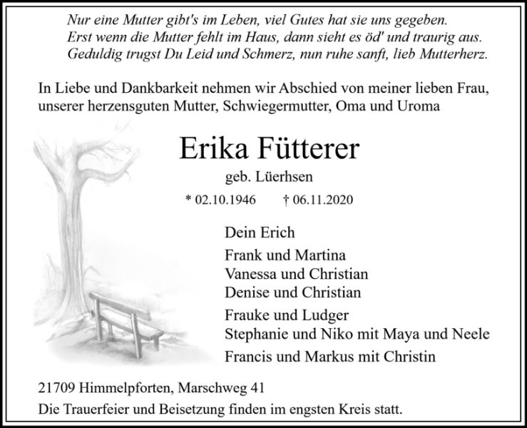 Erika Fütterergestorben am 6. November 2020