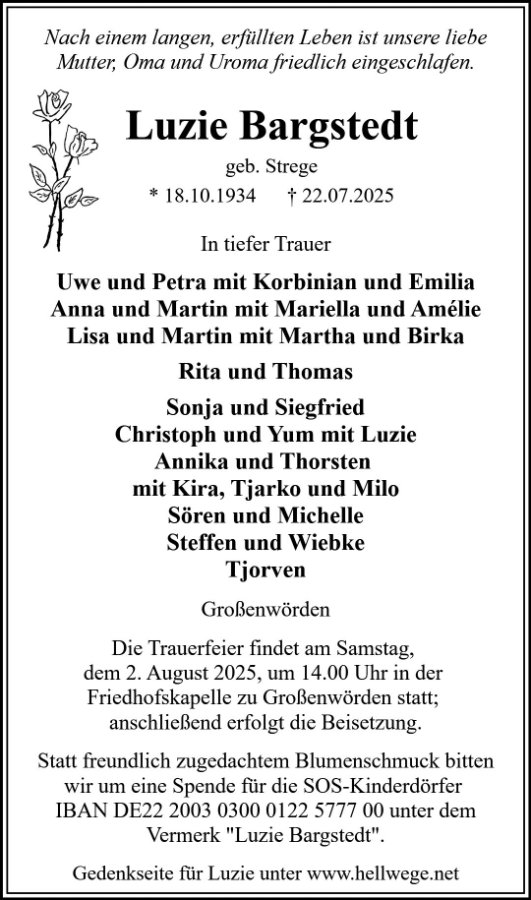 Luzie Bargstedtgestorben am 22. Juli 2025