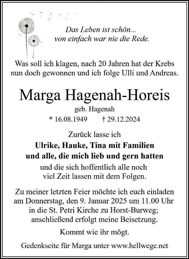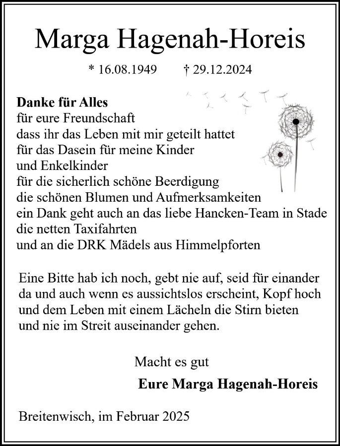 gestorben am 29. Dezember 2024 in Himmelpforten