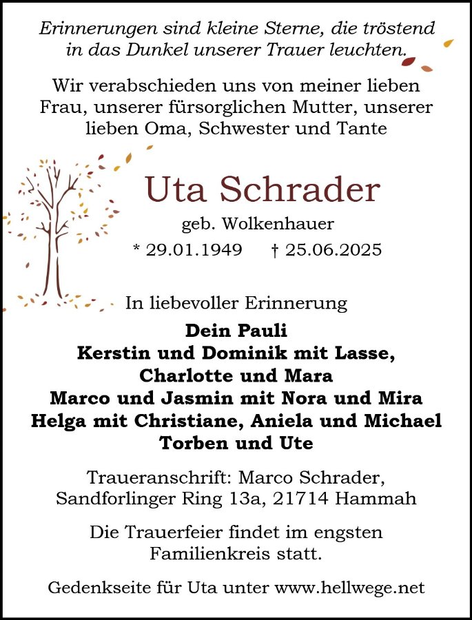 Uta Schradergestorben am 25. Juni 2025
